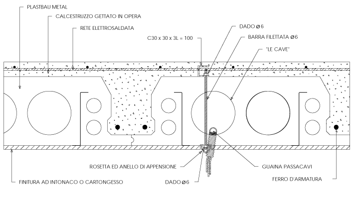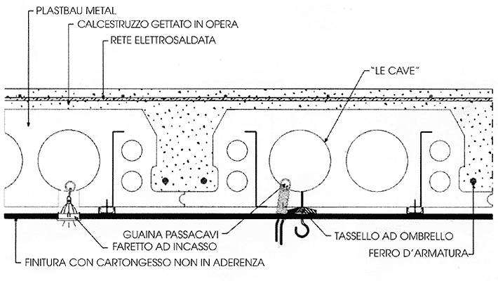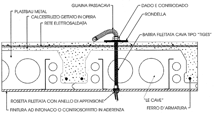 pesanti, dopo il getto di calcestruzzo, con bloccaggio sulla soletta e tubi elettrici