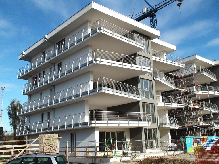 La costruzione delle due torri da cinque piani, con venti appartamenti, è iniziata nel mese di luglio del 2012 e già lo corso Natale le famiglie sono entrate nelle loro nuove case. L’intero stabile è indipendente dalle fonti fossili: non c’è nemmeno l’allacciamento al gas. Per ottimizzare i consumi sono serviti un mix di elementi: l’impianto di climatizzazione è composto da pompe geotermiche e da pompe aria-aria: di volta in volta viene attivato il sistema più conveniente in quel momento. «L’impianto fotovoltaico condominiale da 45 kWp è in grado di produrre l’intero consumo stimato. Con l’energia prodotta nell’arco di un anno dovremmo essere in grado di azzerare i consumi» sostiene Paolo Borsatti di CRB Impresit.