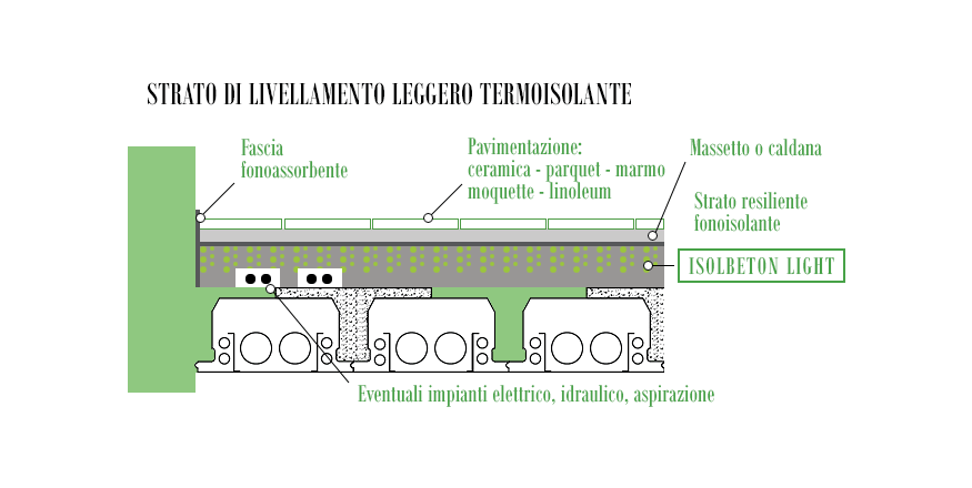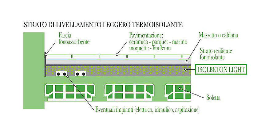 Sottofondi alleggeriti e isolati, massetti, applicabile anche in spessori variabili su solai piani o inclinati.