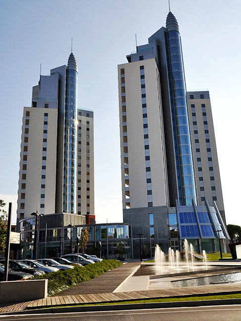 La scelta di utilizzare la tecnologia utilizzando il Solaio Plastbau Metal dimostra quanto questo sistema sia premiante anche nella realizzazione di edifici multipiano, in particolare le due torri di Jesolo si sviluppano su un'area di 10.000 mq con 22 piani ciascuna (pił di 80 metri di altezza) per un volume di intervento pari a 71.000 mc.